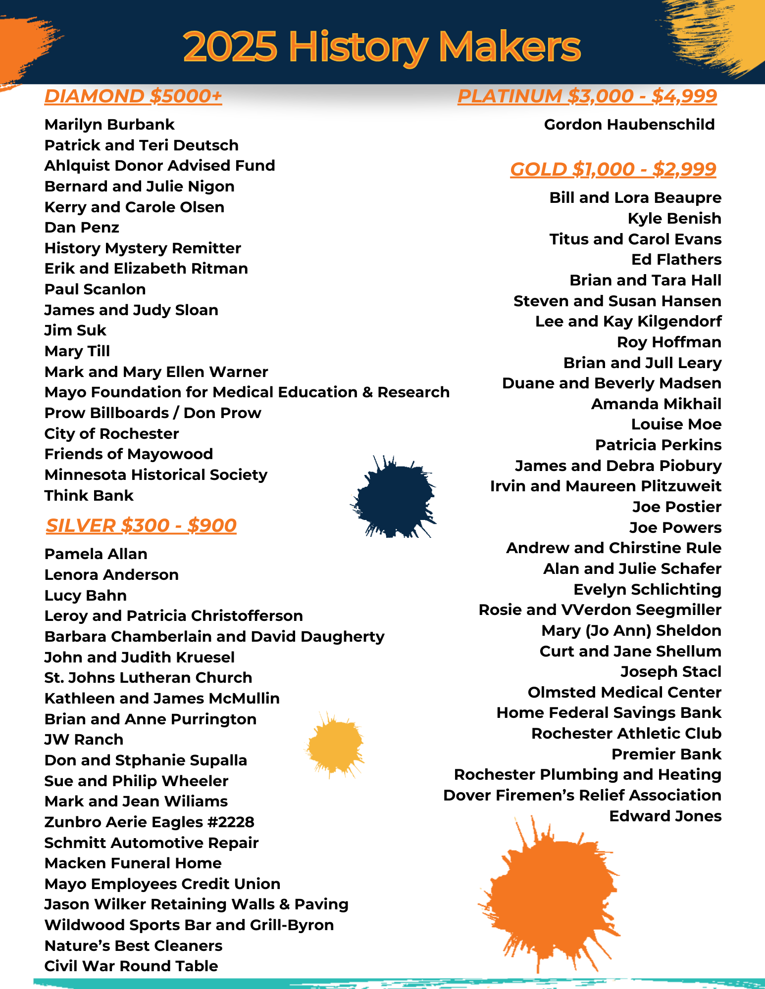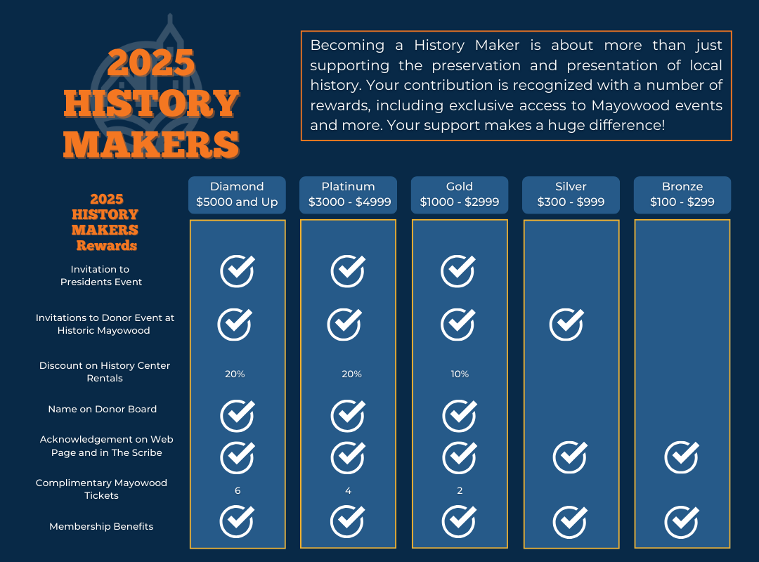 Thanks to all of the generous donors who help support our mission to give people of all ages and backgrounds access and opportunity to learn about the past through interpretive programs and exhibits, research, publications and events. See a full list of our 2025 History Makers HERE.
